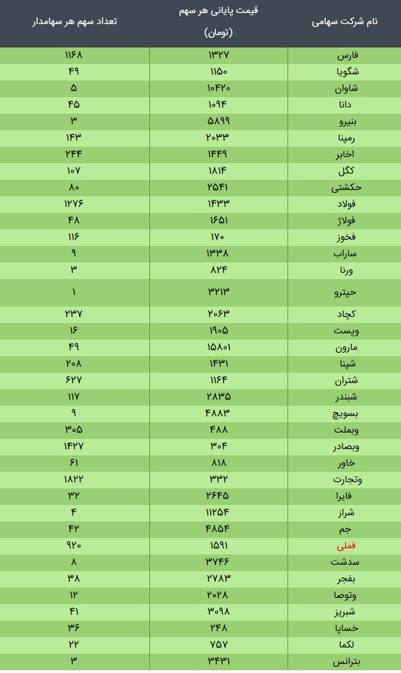 پس از پایان معاملات امروز بازار بورس ایران (دوشنبه ۱ دی ماه)، ارزش هر برگه سهام عدالت ۴۹۰ هزارتومانی دارندگان این سهام به ۱۰ میلیون و هفتصد و چهل و نه هزار تومان رسید.