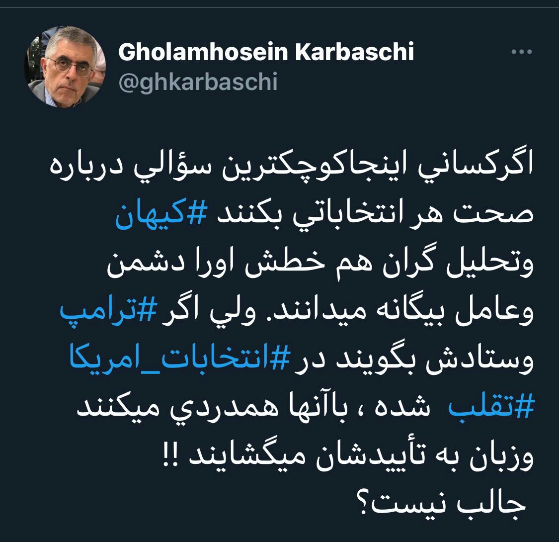 حمله توییتری کرباسچی به روزنامه کیهان را در ادامه ببینید.