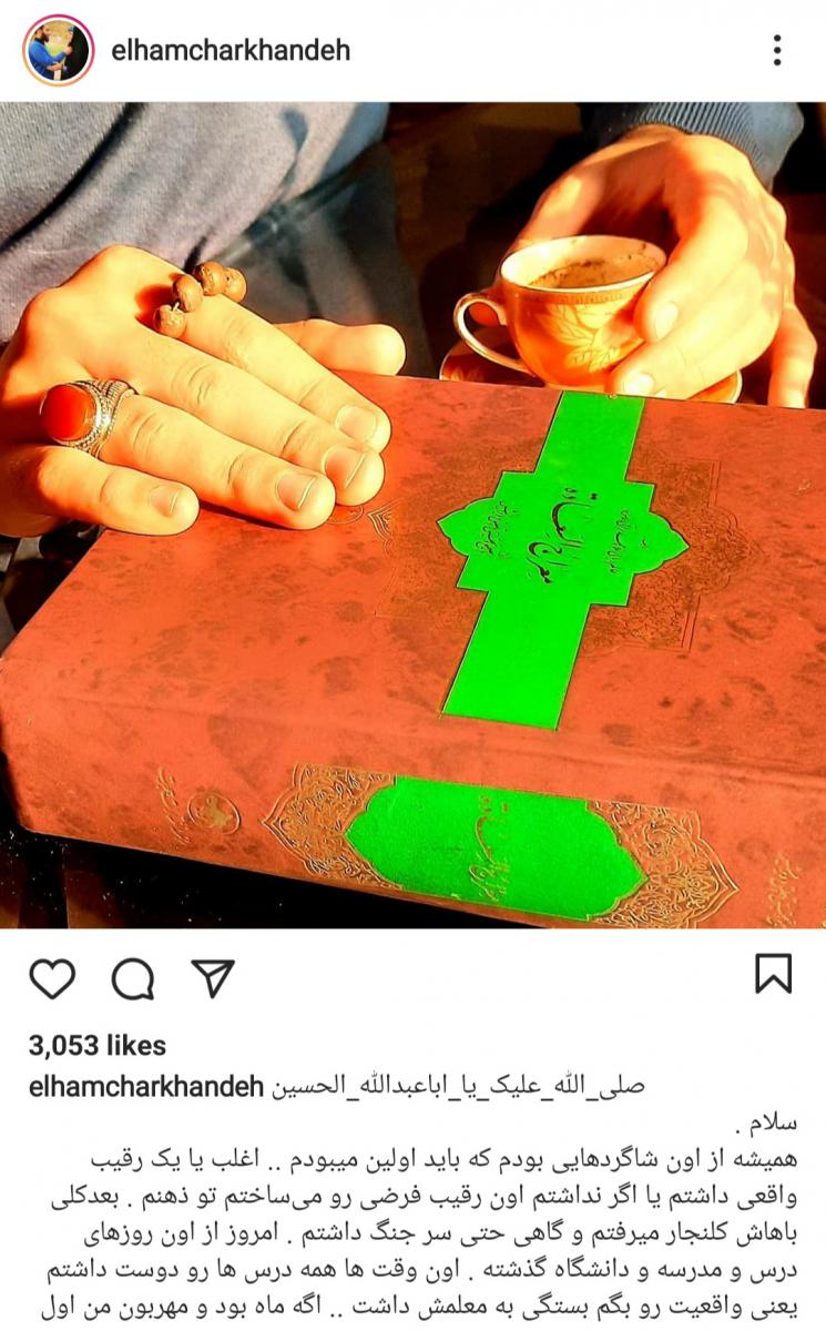 الهام چرخنده در یک پست اینستاگرامی درس خواندن کنار همسرش را این گونه شرح داد: «سید اینجوری که شما درس میدی من عاشق تر از قبل میشم نسبت به دینم…»/ «آقا سید محمد موقع تدریس قهوه نوش جان میکنند . یکی برای خودشون و یکی برای شاگرد بازیگوش و باهوششون که بنده باشم».